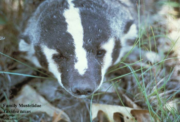 Slide symbol: C -- Close-up of head region. A -- anatomical specialization. H -- habitat or sign of animals activity. Tree removal has increased badger distribution throughout state