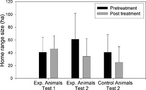 An implicit assumption of the mesopredator release hypothesis (MRH) is that competition is occurring between the larger and smaller predator. When significant competition exists, the MRH predicts that larger species should affect population size, through direct predation or the elicitation of avoidance behavior, of smaller predators. However, there have been few manipulations designed to test these predictions, particularly regarding avoidance. To test whether striped skunks (Mephitis mephitis) avoid coyotes (Canis latrans), we intensively monitored 21 radiocollared skunks in a natural area in northeastern Illinois. We identified 2 spatially distinct groups and recorded 1,943 locations from September to November 2003. For each group, testing periods consisted of 4 weeks (2 weeks pretreatment, 1 week treatment, and 1 week posttreatment). We simulated coyote activity during the treatment week by playing taped recordings of coyote howls at 1-h intervals at 5 locations. Additionally, we liberally applied coyote urine to several areas within 20 randomly selected 100 x 100-m grid cells, and used the grid to classify cells as urine-treated, howling-treated, or control. We determined changes in home-range size and location, and intensity of cell use in response to treatment. We found no differences in home-range size related to treatment (P > 0.248). Although weekly differences in home-range drift approached significance when individuals from both tests were pooled (P = 0.071), drift was highly correlated with mean weekly low temperatures (P = 0.004). Use of howling- and urine-treated cells did not vary among weeks (P > 0.307), nor did proportions of locations within howling circles with assumed effective broadcast radii of 50–200 m (P > 0.851). Examination of our data did not support the prediction that skunks avoid areas of coyote activity on our study site.