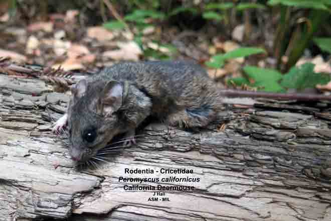 Climbs well, but usually encountered on the ground. Unlike most small mammals, forms stable monogamous pairs and lives in small family groups. Habitat is chaparral, oak woods, coastal sage scrub, redwood forests and brushy hills.