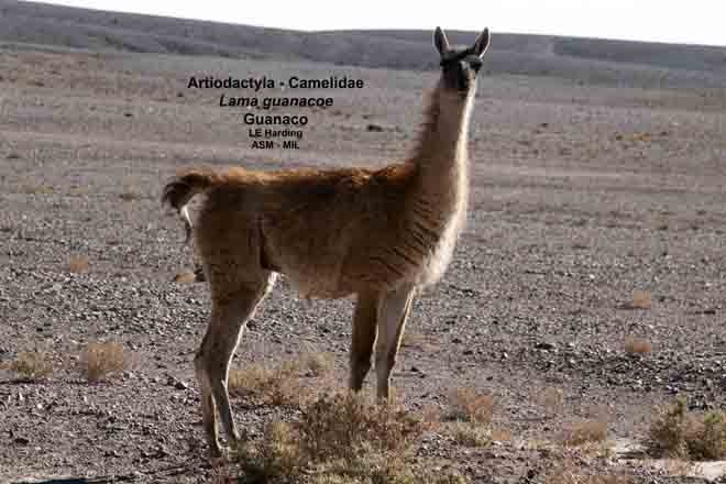 Single animal standing in sparse habitat, Atacama desert. Formerly Lama glama guanicoe.