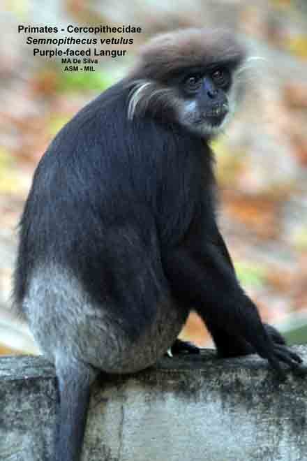 Semnopithecus vetulus vetulus, Southern Lowland Wet Zone Purple-faced Langur. Also as Purple-faced Leaf Monkey|Purple-faced Monkey|Bear Monkey. Formerly as Trachypithecus vetulus. Identified by KP Karanth.