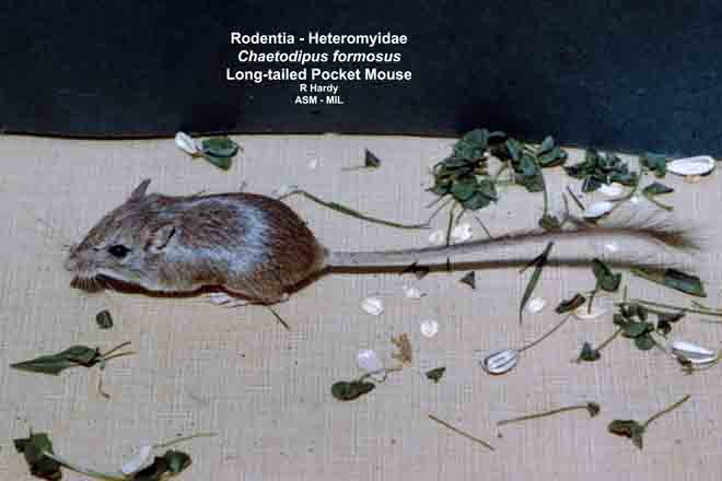 Reviewed by Huey (1964). Included in Perognathus by Hall (1981:542) and earlier workers, but allocated to Chaetodipus by Patton et al. (1981) and Hafner and Hafner (1983). Subspecies reviewed by Williams et al. (1993). Inactive in cold weather and for