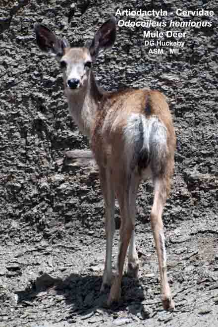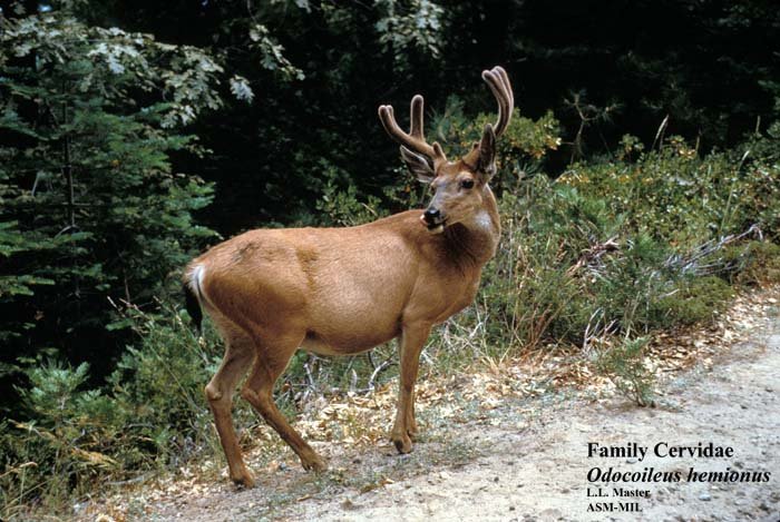 Noted for their bouncing gait. Found in arid areas and sparsely wooded areas. Introduced into several areas. Hybridize with white-tailed deer which seem to be displacing them. May also be harmed by non-native Barbary Sheep.