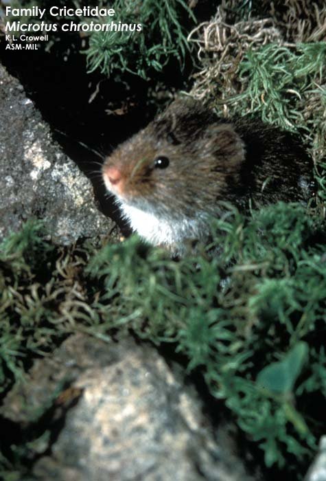 Travels around and under mossy rocks. Eats bunchberry and other green plants and may cache food under rocks. Prefers rocky areas in cool moist hardwood or mixed forests; often found near streams. As name implies, lives in rocky areas. Also called yellow-n