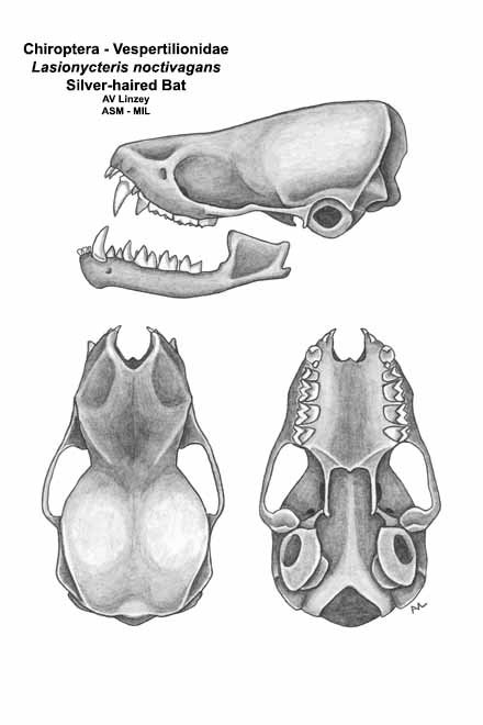 Roosts under bark and in hollow trees. Brown, silvery throat, neck and head. Likes conifers, water. Migrant or nomadic. Hollow trees, behind bark, bldgs. Flies late. Diet consists of a variety of insects.