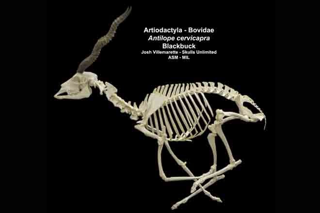 Skeleton of adult male galloping in gathered suspension. Also as Indian Antelope.