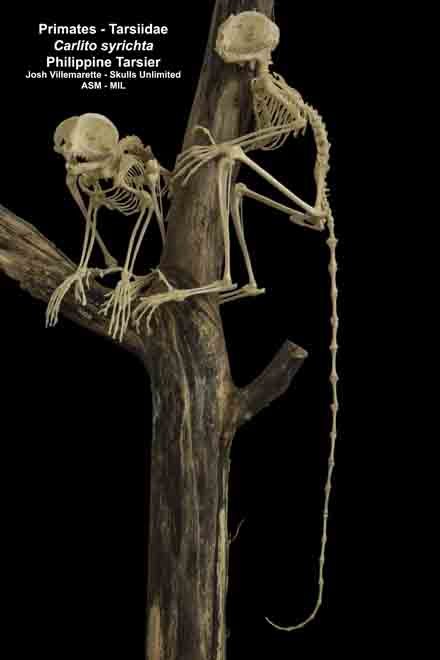 Anterior view of two skeletons grasping branches. Formerly Tarsius syrichta.