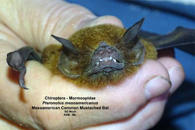 Also as Mesoamerican Mustached Bat|Smith's Common Mustached Bat. Formerly Pteronotus parnellii mesoamericanus.