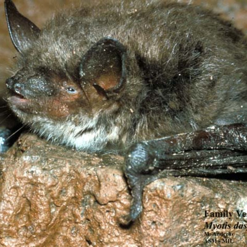 Dorsal view of captive animal, Miniopterus schreibersii blepotis. Also as Common or Schreiber's Bent-winged Bat. Formerly in Vespertilionidae.