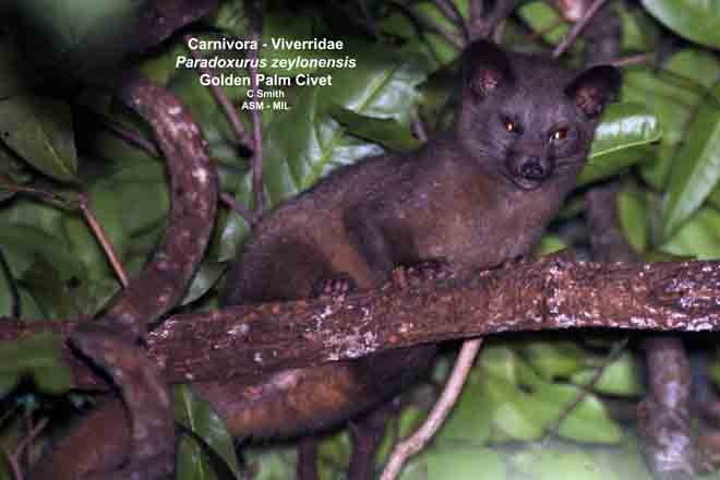 Originally identified by Colin Groves as Paradoxurus montanus, Sri Lankan Brown Palm Civet.