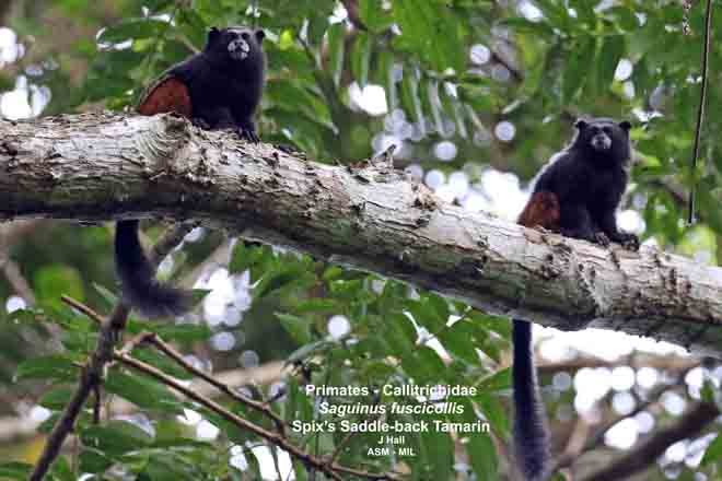 Formerly Leontocebus fuscicollis. Also as Brown-mantled Tamarin|Hershkovitz's Saddle-back Tamarin|Saddleback Tamarin|Acre Saddle-back Tamarin|Ávila-Pires's Saddle-back Tamarin|Gray-fronted Saddle-back Tamarin|Lako's Saddle-back Tamarin. Formerly Cebidae (Callitrichinae).